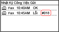 Nếu không thể thực hiện in, hoặc không thể gửi hay nhận dữ liệu đã quét hoặc fax, hoặc xảy ra lỗi khác, mã lỗi (gồm ba chữ số bắt đầu bằng “#”) sẽ được hiển thị trong báo cáo hoặc nhật ký công việc.