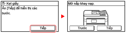 Không được cố lấy giấy bị kẹt ra khỏi máy.Việc dùng lực mạnh để lấy giấy ra có thể dẫn đến thương tích cá nhân hoặc làm hỏng các bộ phận của máy. Nếu bạn không thể lấy giấy ra, vui lòng liên hệ với đại lý hoặc đại diện cung cấp dịch vụ của bạn. Nếu Sự Cố Vẫn Tiếp Diễn Khi Tất Cả Giấy Bị Kẹt Đã Được Loại BỏHãy bỏ tay ra khỏi máy ngay lập tức để quần áo và tay của bạn không bị kẹt vào trục lăn. |