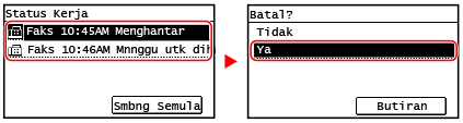 Anda boleh membatalkan penghantaran faks dengan mengikuti arahan di skrin.