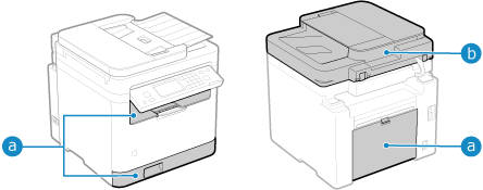 ![]() Laci, dulang output, dalam mesin, dan bahagian kiri Penyuap |