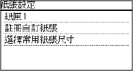 在 [首頁] 畫面中按下 [紙張設定] 時會顯示此畫面。此畫面可用來指定本機的各種設定。