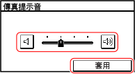 您可以調整傳入傳真的聲音音量,以及在成功傳送和接收傳真與成功掃描原稿時通知您的聲音音量。
