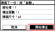 完成所有原稿的掃描後,按下 [開始傳送]。