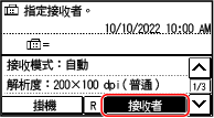 使用數字鍵輸入傳真號碼,或按下 [接收者] 選擇在通訊錄中註冊的目的地。