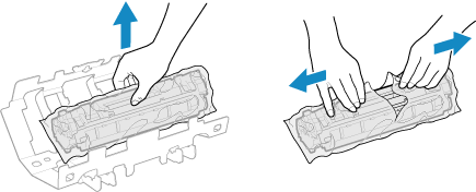從包裝材料中取出碳粉匣。