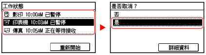 如果顯示工作清單畫面,請選擇要取消的工作,然後按下 [是]。