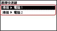 選擇 [掃描->電腦1] 或 [掃描->電腦2]。