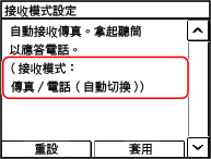 出現訊息 [設定已套用。] 後,將顯示接收模式設定畫面。