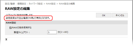 [設定/登録] クリックすると、[設定/登録]画面が表示されます。 管理者モードでログインしている場合は、すべての設定の変更や、データの保存/読み込みなどの操作ができます。 [設定/登録]画面で設定できる項目は、操作パネルの設定メニューとほぼ同じですが、操作パネルまたはリモートUIのどちらかでしか設定できない項目もあります。 設定メニュー一覧項目によっては、設定変更を反映するために、本機の再起動が必要です。再起動が必要な場合は、画面の上部にメッセージが表示されます。 |