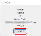 プリント中の画面が表示されている場合は、[キャンセル]をクリックします。