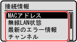無線LAN接続時の本機のMACアドレスや接続情報のほか、セキュリティーに関する設定なども確認できます。