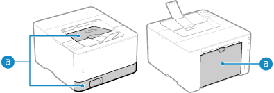 ![]() Bandeja de papel, bandeja de salida y parte trasera |