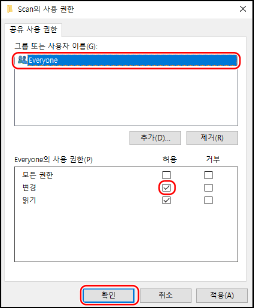 1 | [그룹 또는 사용자 이름]에서 [Everyone]을 선택합니다. |