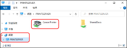 在 [網路] 中,選擇列印伺服器以顯示共用印表機。