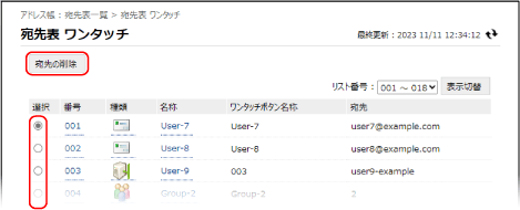 削除する宛先を選択し、[宛先の削除]をクリックする
