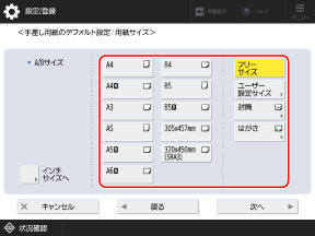 [手差し用紙のデフォルト設定]画面に戻ります。
