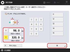 よく使用する定形外サイズの用紙を登録している場合は、[S1]~[S5]を押して呼び出すことができます。