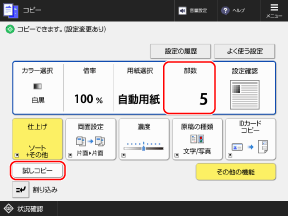 コピーの画面で、複数部数を入力し、[試しコピー]を押す