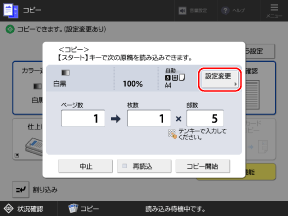 コピーの画面設定ボタンの下部に[設定あり]が表示されます。