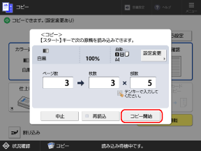 すべての原稿の確認が完了したら、[コピー開始]を押す