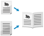 スキャンデータをプリントするときに、小冊子として製本できるようにスキャンします。