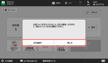 かんたんスキャンでは、宛先の指定や、カラー設定などの基本的な機能をボタン操作で簡単に設定できます。