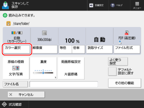 スキャンの画面で、カラー選択の設定ボタンを押す