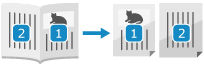 本や雑誌のような見開き原稿をスキャンする場合に、左右のページを別々のページに分割してスキャンするように設定します。