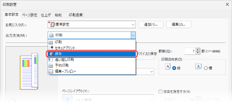 [ジョブの処理方法]で、[保存]を選択し、[OK]をクリックする
