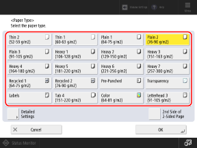 Press [Detailed Settings], and select the paper type from the displayed list.