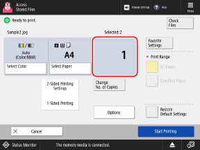 When multiple files are selected in Step 6, press [Change No. of Copies] and enter the number of prints.