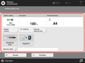 Écran [Accueil]L'écran [Réglages/Enregistrement] s'affiche.