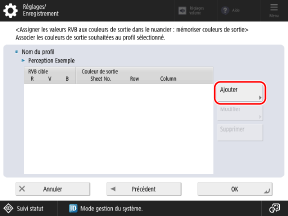 Appuyez sur [Assigner valeurs RVB aux couleurs sortie dans nuancier].
