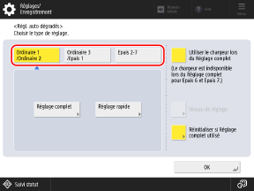 Utilisez le panneau de commande pour effectuer le calibrage (Réglage complet). Vous ne pouvez pas effectuer le calibrage (Réglage complet) à l’aide de l’interface utilisateur distante depuis un ordinateur.