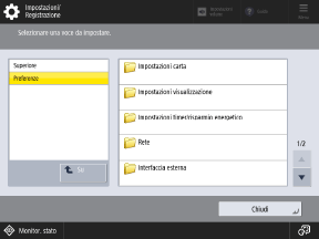 Impostazioni/Registrazione] sul pannello di controllo. Usare questa schermata per configurare le varie impostazioni della macchina.