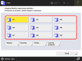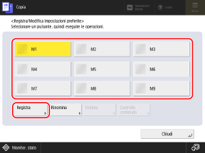 Selezionare un pulsante con un'impostazione registrata e premere [Rinomina] per rinominarlo.