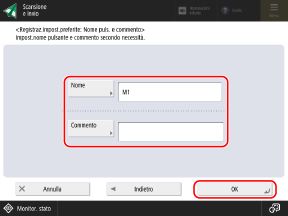 Quando viene visualizzata la schermata per impostare il nome del pulsante e il commento