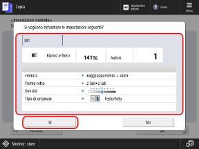 Le impostazioni di copia sono state completate, quindi è possibile premere [