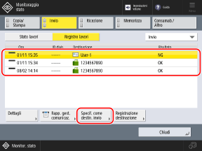 Quando si specifica una destinazione selezionando un lavoro di scansione nel registro, è possibile premere [Destinazione successiva] e specificare un'ulteriore destinazione dello stesso tipo inserendo direttamente le informazioni.