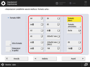 Per i formati carta visualizzati quando si preme [Altro formato], fare riferimento a quanto segue: