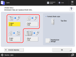 Schermata di copiaViene visualizzata la schermata [Fronte-retro].