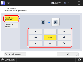 Nella schermata di copia, premere [Opzioni] [Spostamento]. Schermata di copia