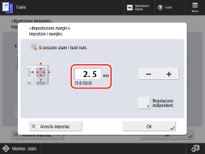 Per inserire dimensioni separate per il bordo superiore, inferiore, sinistro e destro, premere [Regolazione indipendent.] e inserire le dimensioni dei margini.