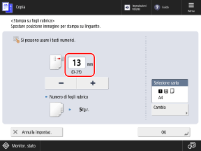 Per copiare sulla linguetta, impostare la posizione di stampa della linguetta inserendo la larghezza di regolazione da applicare all'originale del foglio rubrica.