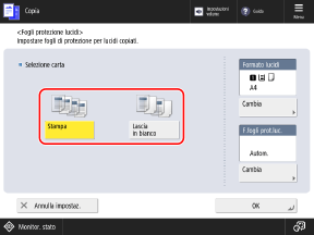 Schermata di copiaViene visualizzata la schermata [Fogli protezione lucidi].