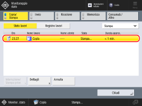 Selezionare il lavoro di cui si vogliono verificare i dettagli e premere [Dettagli].