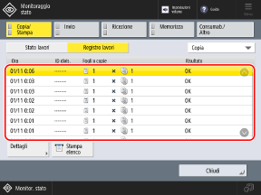 * Se il registro è impostato in modo da non essere visualizzato, è possibile verificare solo lo stato della copia. [Visualizzazione registro lavori]