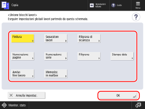 Configurare le impostazioni di copia da applicare a tutti gli originali e premere [OK].