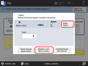 Premere [Impostaz. scans. blocco success.] e configurare le impostazioni di copia per il secondo originale.