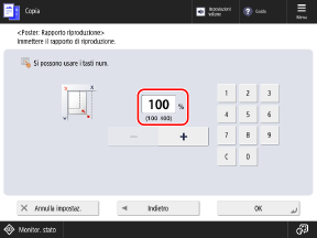 Nella schermata di copia, premere [Rapporto riproduzione].